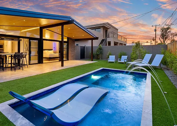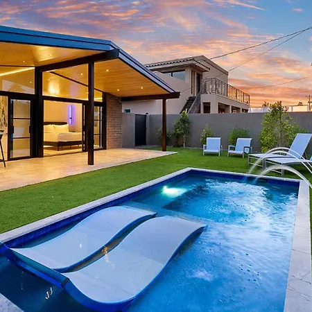 Modern Home Near Old Town With Pool 4Bd & Cornhole is uitgerust met zelfvoorzienende voorzieningen, waaronder een complete keuken en een eethoek buiten waar gasten van kunnen genieten. U kunt ook gebruikmaken van een oven en een vaatwasser om uw eigen maaltijd te bereiden. Tacos Jalisco serveert Spaanse gerechten en is op 350 meter afstand gelegen. Scottsdale Rd & Windsor Av bushalte is op wandelafstand van ongeveer 10 minuten hiervandaan.